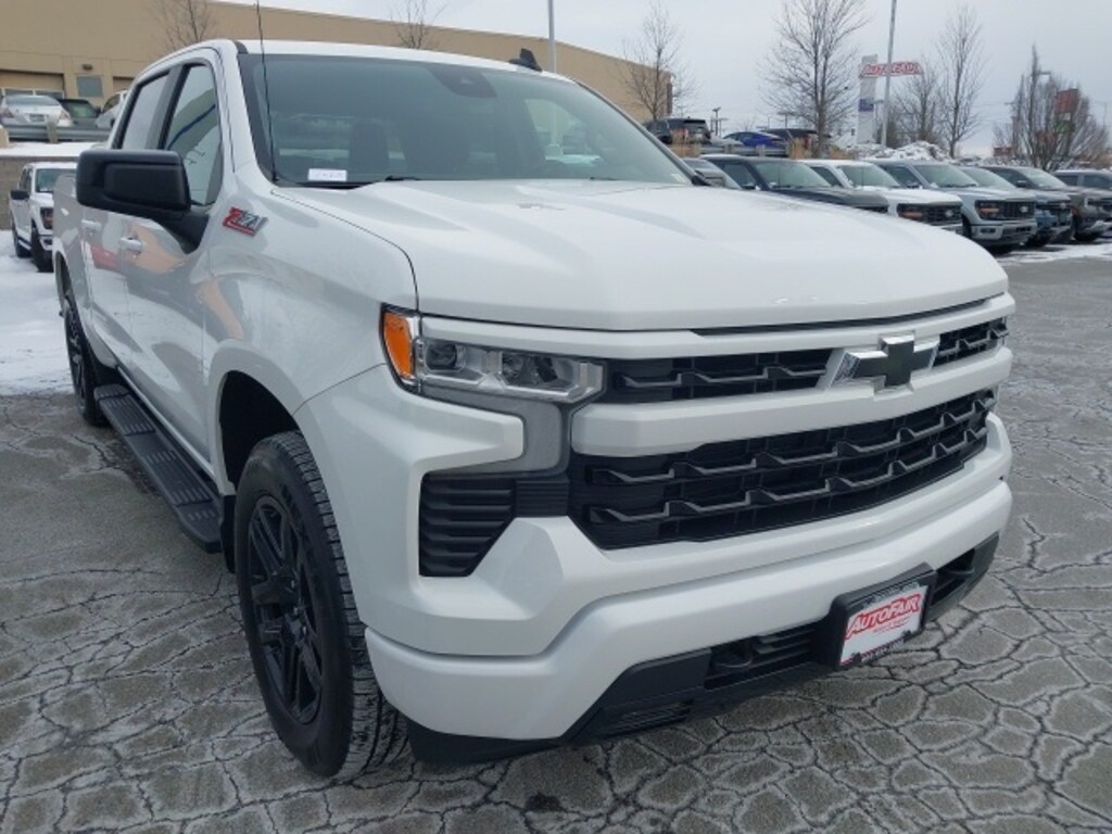 This 2023 Chevrolet Silverado 1500 RST 4WD in Summit White delivers bold styling, proven performance, and modern technology. Powered by the legendary EcoTec3 5.3L V8, this CARFAX One-Owner truck offers strong towing capability and confident off-road performance thanks to the Z71 Off-Road Package, off-road suspension, auto-locking rear differential, and trailering package with integrated trailer brake controller. The RST trim is enhanced with 20" high-gloss black aluminum wheels, dual exhaust with polished outlets, black assist steps, LED lighting, and a functional EZ Lift power lock and release tailgate with bed-mounted power outlet.
