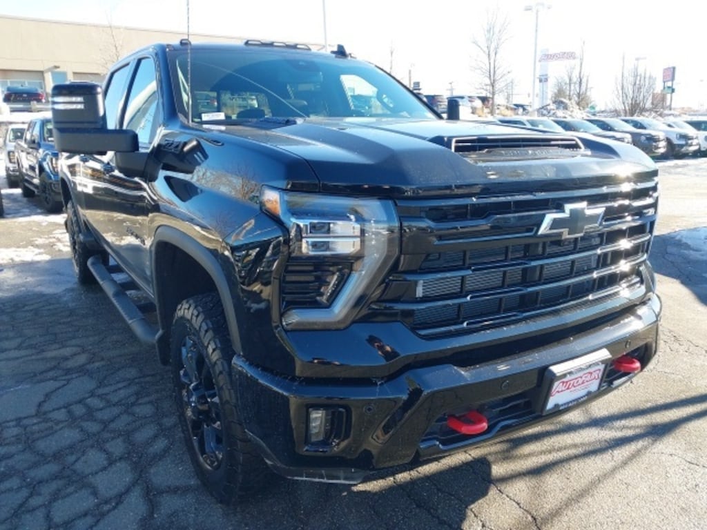 Command capability, comfort, and cutting-edge technology with this 2026 Chevrolet Silverado 2500HD LTZ in Black, powered by the legendary Duramax 6.6L V8 Turbodiesel and equipped with 4WD for maximum performance on and off the road. This one-owner truck with a clean CARFAX is built for heavy-duty towing and hauling, featuring a 3.73 rear axle ratio, trailer camera provisions, Bed View camera, and EZ Lift power tailgate. Rugged exterior touches include 4" round black assist steps, high-gloss black front and rear bumpers, black Chevytec spray-on bedliner, Z71 Off-Road Package, and 20" high-gloss black painted wheels. Additional utility features include 120-volt bed and interior outlets, front frame-mounted red recovery hooks, exhaust brake, and snow plow prep/camper package, making this Silverado ready for any job or adventure.