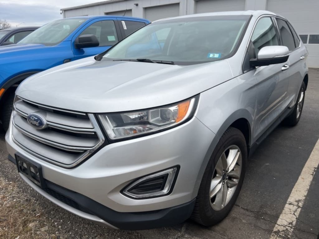 The 2017 Ford Edge SEL AWD in Ingot Silver offers a refined balance of power, comfort, and technology, making it a versatile midsize SUV for daily driving and weekend adventures. Powered by a 2.0L EcoBoost I4 GTDi Turbocharged engine, this Ford Blue Certified vehicle delivers responsive performance with confidence-inspiring all-wheel-drive capability. Its exterior features 18" sparkle silver-painted aluminum wheels, body-color bumpers, heated power mirrors, fully automatic headlights, and a rear spoiler, while rear parking sensors and an exterior rearview camera enhance convenience and safety.