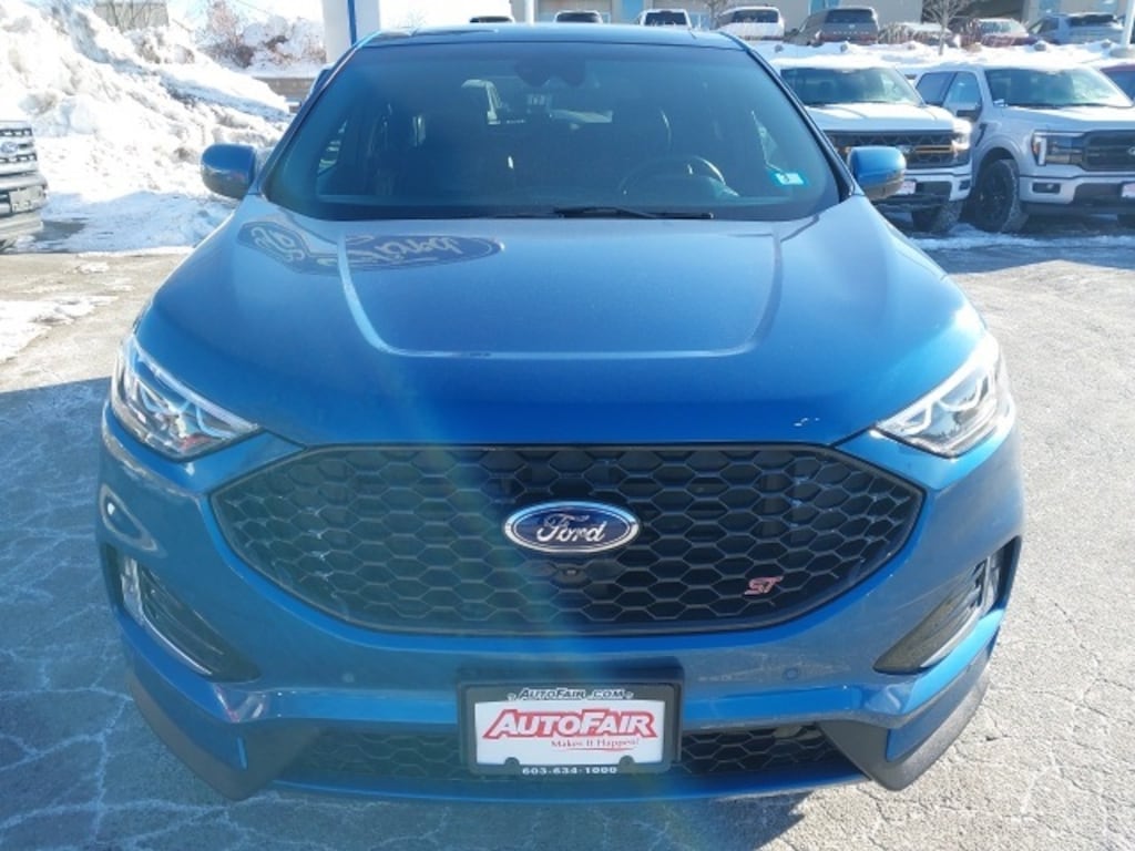 This Edge ST is loaded with advanced technology and driver-assist features, including adaptive cruise control with stop & go, lane centering, evasive steering assist, enhanced active park assist, and a front 180-degree camera. Even better, the odometer reads 38,450 miles below market average, delivering exceptional value with impressive 19/26 city/highway MPG. Backed by Ford Blue Certification and confidence-inspiring safety features, this performance SUV is available now at AutoFair Ford of Manchester, New Hampshirethe #1 Ford Certified and used Ford dealer in New England, proudly serving Concord, Nashua, Salem, Londonderry, Laconia, Rochester, and Exeter. See more at autofairford.com.