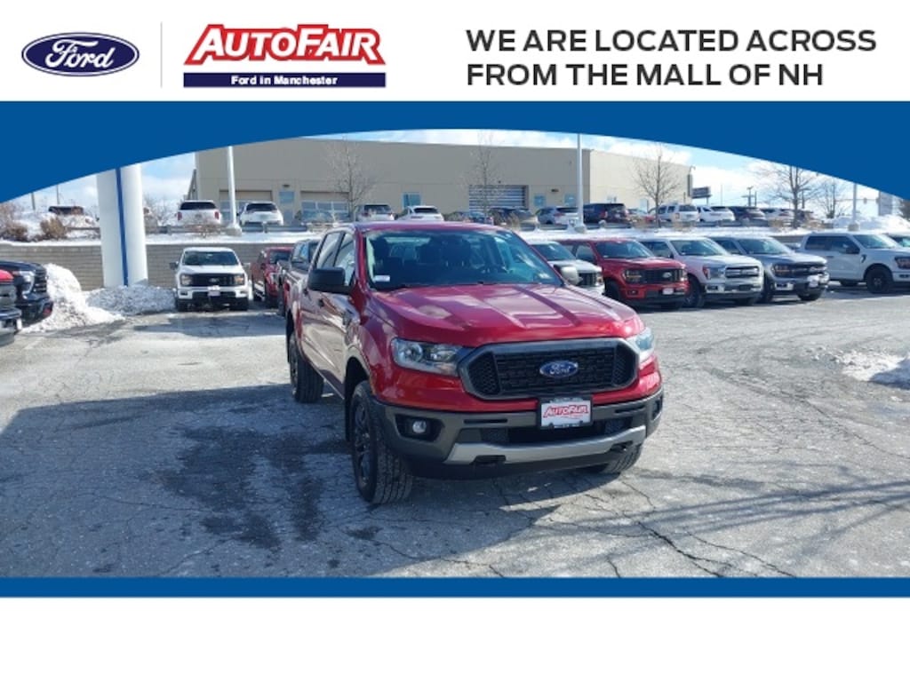 Inside, the Rangers 301A Mid Equipment Group cabin blends comfort and convenience with a leather-wrapped steering wheel and shifter, power-folding sideview mirrors with power glass, and illuminated entry. Technology features include Apple CarPlay and Android Auto, an exterior parking camera, and auto high-beam headlights for enhanced safety and connectivity. On the outside, the Sport Appearance Package, sport box decal, black grille with magnetic surround, and 17" magnetic painted aluminum wheels give this truck a bold, athletic presence. Available now at AutoFair Ford of Manchester, New Hampshirethe #1 Ford Certified and used Ford dealer in New England, serving Concord, Nashua, Salem, Londonderry, Laconia, Rochester, and Exeter.
