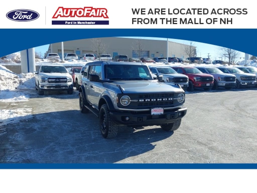 Tech and convenience are fully loaded with Apple CarPlay/Android Auto, connected navigation, exterior parking camera, rear parking sensors, remote start, remote keyless entry, power windows and mirrors, and a rear-window defroster with washer. Additional safety features include ABS brakes, traction control, low tire pressure warning, and electronic stability control. Backed by Ford Gold Certification, including an 84-month/100,000-mile powertrain limited warranty, 172-point inspection, roadside assistance, and 22,000 FordPass Rewards Points, this Bronco is ready for adventure. Available now at AutoFair Ford of Manchester, New Hampshirethe #1 Ford Certified and used Ford dealer in New England, serving Concord, Nashua, Salem, Londonderry, Laconia, Rochester, and Exeter. See more at autofairford.com.