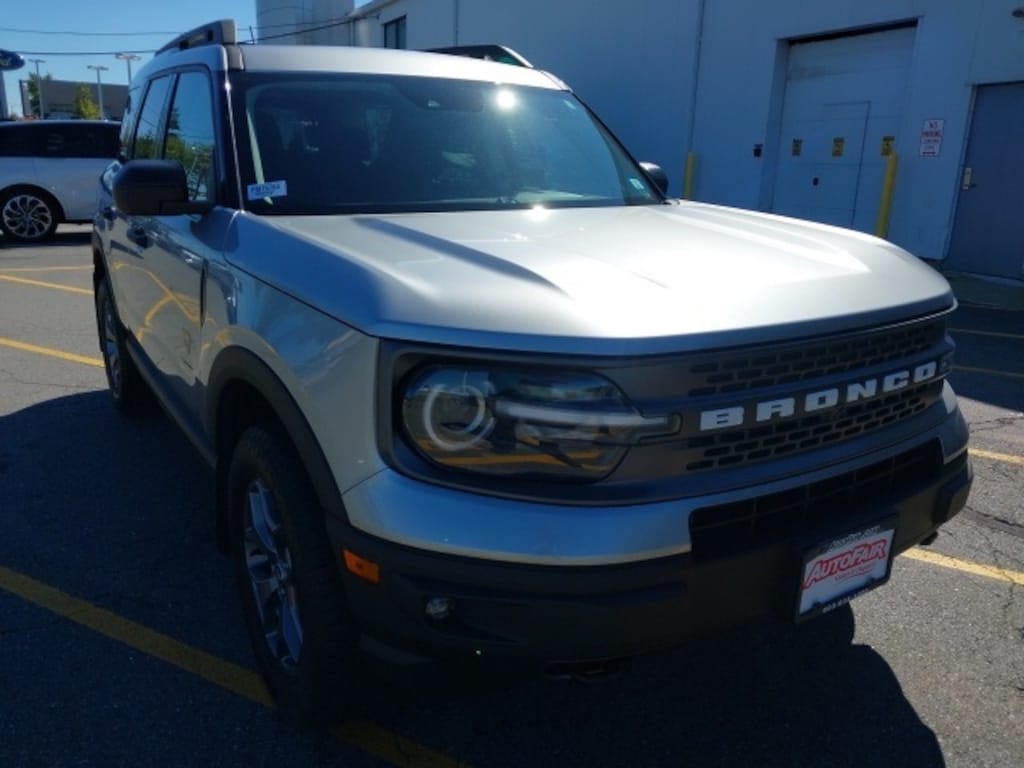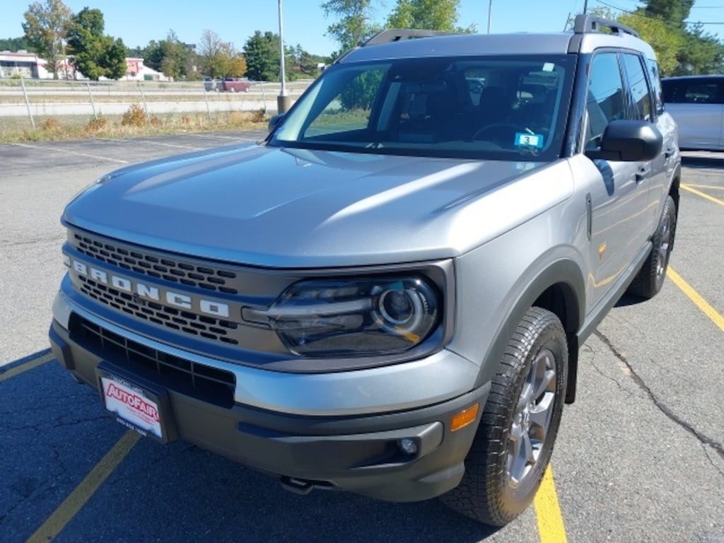 Adventure-ready and packed with capability, this 2023 Ford Bronco Sport Badlands 4WD in striking Iconic Silver Metallic is designed to take you beyond the pavement with confidence. Powered by a turbocharged 2.0L EcoBoost I4 engine and paired with a 3.80 axle ratio, this rugged SUV delivers responsive performance on and off the road. As a Ford Gold Certified and Clean CARFAX recent arrival, it has passed a comprehensive inspection and is backed by extended warranty coverage. With 17" Carbonized Gray-Painted Aluminum wheels, front and rear splash guards, and the Class II Trailer Tow Package with sway control, it's built to handle both your daily drive and weekend getaways.