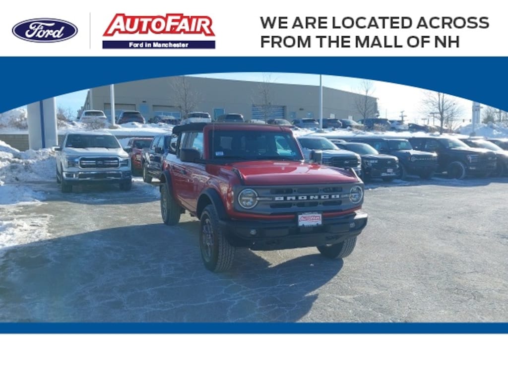 Inside, the Big Bend offers durable comfort with marine-grade vinyl bucket seats, a leather-wrapped shift knob, and smart connectivity including Apple CarPlay/Android Auto, a 7-speaker audio system, and steering wheel-mounted controls. Convenience features like power windows, heated door mirrors, remote keyless entry, and illuminated entry make daily driving easy. This Bronco is Ford Gold Certified and priced below KBB Fair Purchase Price, giving you added value and peace of mind with comprehensive warranty coverage, roadside assistance, a 172-point inspection, and 22,000 FordPass Rewards Points toward maintenance. Available now at AutoFair Ford of Manchester, New Hampshirethe #1 Ford Certified and #1 used Ford dealership in New England, proudly serving Concord, Nashua, Salem, Londonderry, Laconia, Rochester, and Exeter. See more at https://www.autofairford.com/