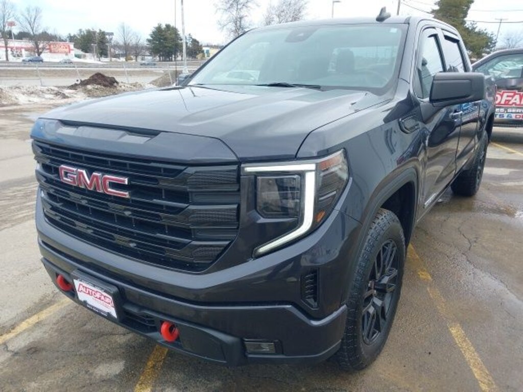 Command the road in this bold 2022 GMC Sierra 1500 Elevation finished in eye-catching Titanium Rush Metallic. Powered by a responsive 2.7L Turbo engine and equipped with 4WD, this Sierra delivers impressive capability with confident performance. A Clean CARFAX and recent arrival status make this truck an outstanding find. Designed with rugged style, it features a body-color header with gloss black mesh grille bars, 20" x 9" High Gloss Black painted aluminum wheels, front frame-mounted black recovery hooks, and deep-tinted glass. Inside, comfort meets technology with a 10-way power driver seat with lumbar support, heated front seats, heated steering wheel, dual-zone automatic climate control, navigation system, and wireless phone projection with Apple CarPlay and Android Auto compatibility.