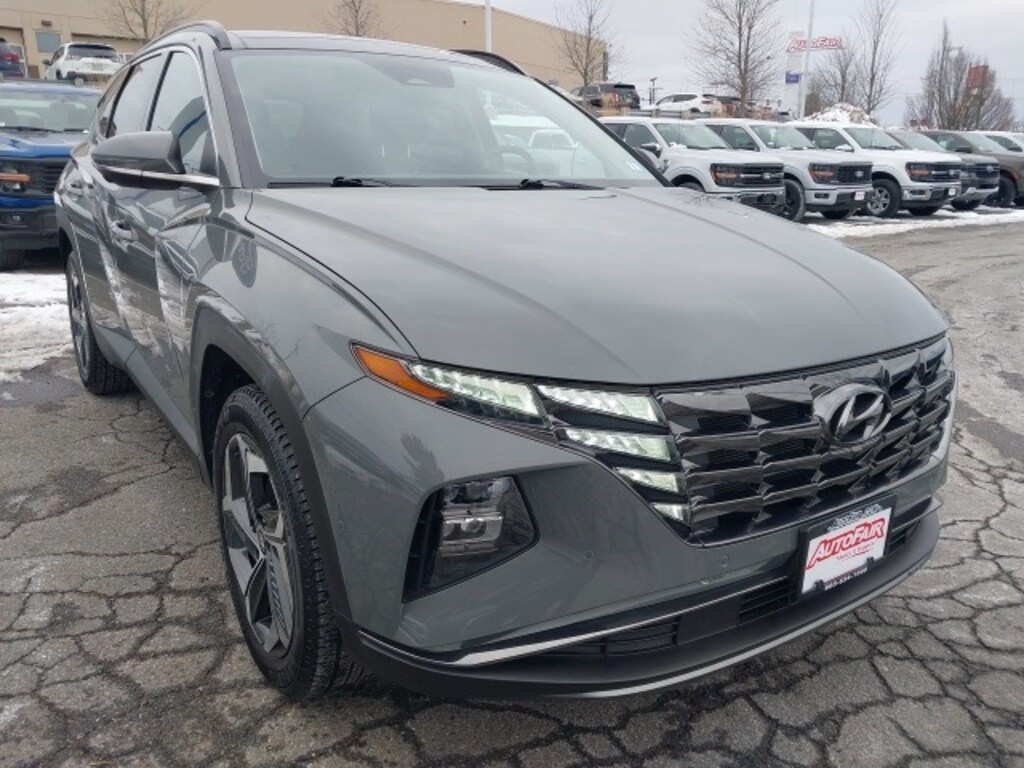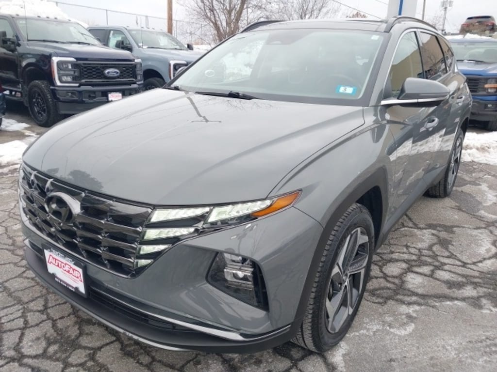 This 2024 Hyundai Tucson Limited AWD in elegant Hampton Gray delivers premium comfort, advanced technology, and confident all-wheel-drive performance. Powered by a 2.5L I4 engine producing 187 horsepower, this Tucson offers smooth, responsive driving while still achieving an efficient 23/29 city/highway MPG. The Limited trim is loaded with upscale features including leather seat trim, heated and ventilated front bucket seats, heated rear seats, a heated steering wheel, power moonroof, power liftgate, and memory seating. Technology highlights include navigation, Apple CarPlay & Android Auto, a Bose premium audio system, auto-dimming rearview mirror, and rain-sensing wipers, creating a refined and connected driving experience.
