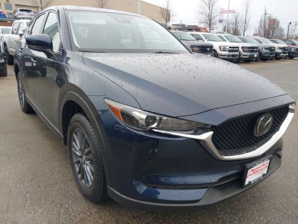 Finished in striking Deep Crystal Blue Mica, this 2021 Mazda CX-5 Touring AWD combines sporty styling, refined comfort, and responsive performance. Powered by a SKYACTIV 2.5L 4-Cylinder DOHC engine with All-Wheel Drive, this crossover delivers a smooth, confident ride while achieving 24/30 City/Highway MPG. This CARFAX One-Owner vehicle has just arrived and stands out even more with an odometer reading 45,590 miles below market average, making it an excellent value. The exterior features 17" aluminum alloy wheels, auto high-beam headlights, rain-sensing wipers, and a power sliding-glass moonroof with interior sunshade, providing both style and functionality for everyday driving or weekend adventures.