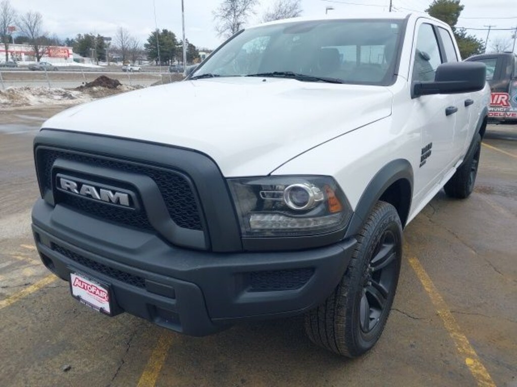 The 2022 Ram 1500 Classic Warlock in Bright White Clearcoat delivers bold styling and rugged 4WD capability with unmistakable attitude. Powered by a proven 3.6L V6 24V VVT engine, this CARFAX One-Owner, Clean CARFAX truck combines dependable performance with head-turning design. Equipped with the Quick Order Package 29F Warlock, it features aggressive black styling elements including a black grille with RAM lettering, black powder-coated front and rear bumpers, black wheel flares, black exterior mirrors and badging, 4x4 flat black badge, black headlamp filler panel, and 20" x 9" Semi-Gloss Black Aluminum wheels. With raised ride height, rear extra heavy-duty shock absorbers, 3.21 rear axle ratio, and front wheel well liners, this Warlock is built to handle tough terrain while standing out from the crowd.