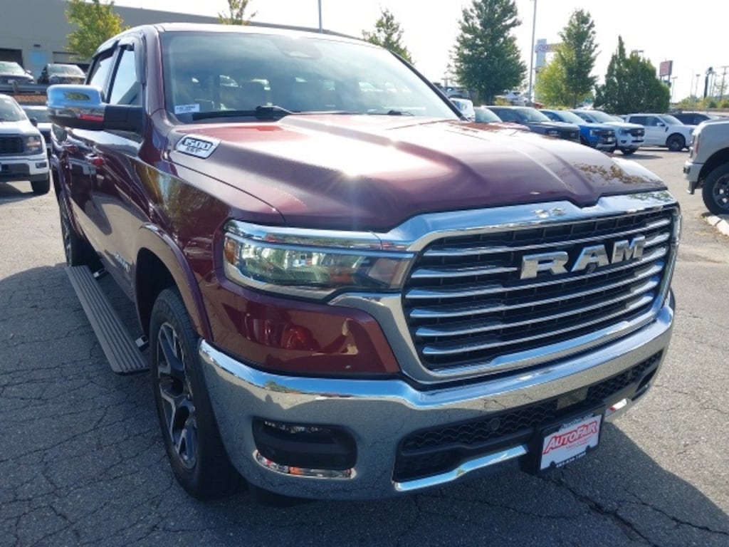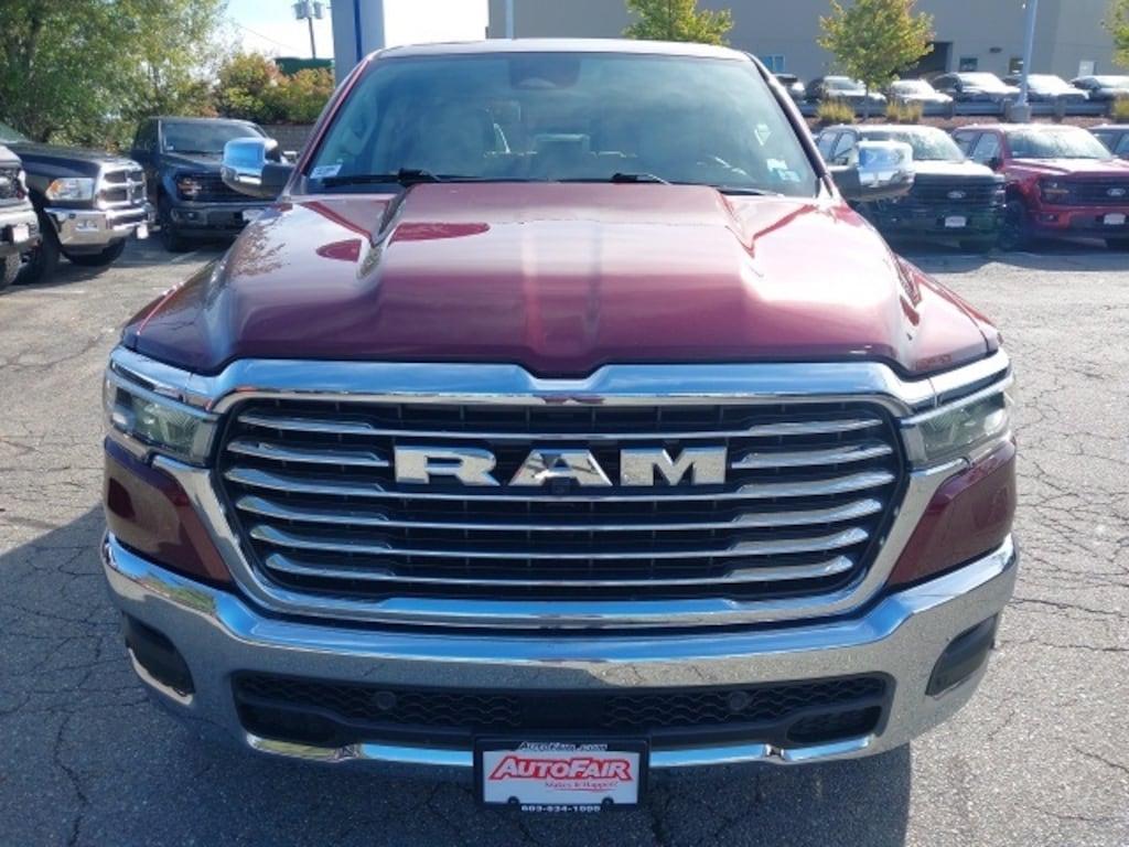 Inside, the Laramie spoils you with upscale features including ventilated and heated front seats, heated rear seats, a leather-trimmed 40/20/40 bench seat, and a Dual-Pane Panoramic Sunroof. Technology is front and center with the Uconnect 5 Nav system displayed on a massive 12-inch touchscreen, complete with Apple CarPlay/Android Auto, HD Radio, integrated navigation, and a premium 10-speaker sound system. Additional luxuries like driver seat memory, power-adjustable pedals, rain-sensing wipers, and a full suite of driver-assist and safety features round out an incredibly well-equipped interior. Whether you need a truck for work, travel, or everyday driving, this 2025 Ram 1500 Laramie delivers top-tier performance and comfort in one striking package.