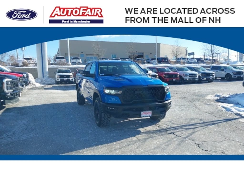 Inside, the Ram 1500 Rebel blends toughness with refinement, offering heated front seats, a heated steering wheel, power driver seat, and power-adjustable pedals for personalized comfort. Technology highlights include the Uconnect 5 NAV system with a 12-inch touchscreen, Apple CarPlay and Android Auto, wireless charging pad, and a premium 10-speaker audio system. Safety and convenience features such as auto high-beam headlights, ParkView rear back-up camera, auto power-folding mirrors, and auto-dimming mirrors enhance everyday driving. Available now at AutoFair Ford of Manchester, New Hampshire, the #1 Ford Certified dealership in New England, proudly serving Manchester, Concord, Nashua, Salem, Londonderry, Laconia, Rochester, and Exeter. Visit autofairford.com to learn more.
