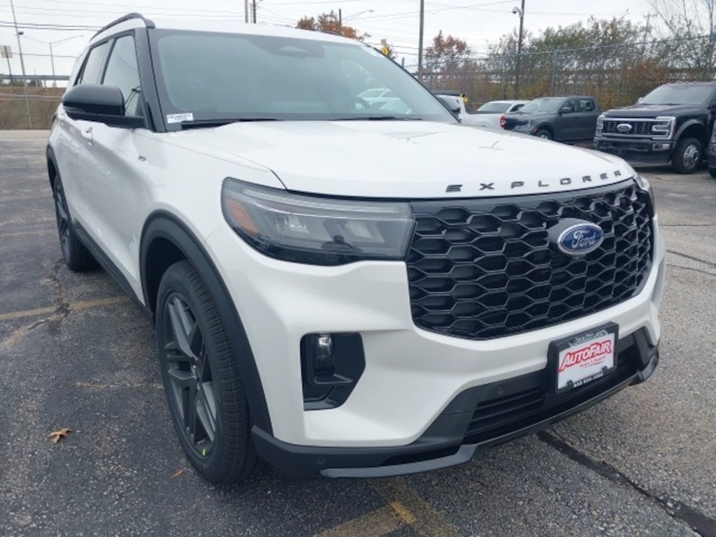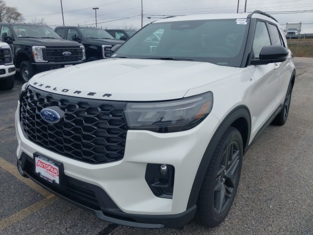 The **2026 Ford Explorer ST-Line**, equipped with the **Premium Package** and **ST-Line Street Pack**, delivers elevated sporty style, upgraded comfort, and enhanced performance capability. Bold exterior cues include **21" Magnetite-painted aluminum wheels**, red painted performance brake calipers, body-color bumpers, and heated power mirrors. Performance Brakes and **four-wheel independent suspension** give the ST-Line confident handling, while auto high-beam headlights, fully automatic headlamps, fog lights, rain-sensing wipers, and the **Exterior Parking Camera Rear** support excellent visibility. The **Equipment Group 300A Standard Package** ensures a well-rounded foundation of technology and safety, including Fords **911 Assist** and comprehensive stability and traction systems. With an efficient **20/27 city/highway MPG**, this ST-Line balances athletic design with everyday practicality.