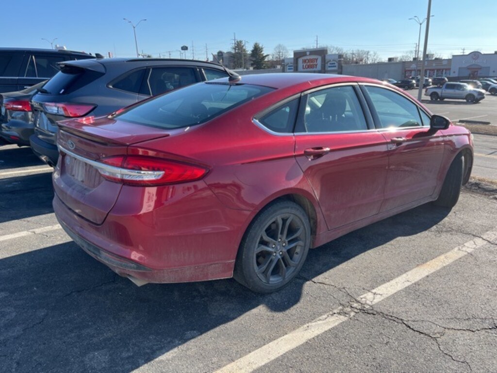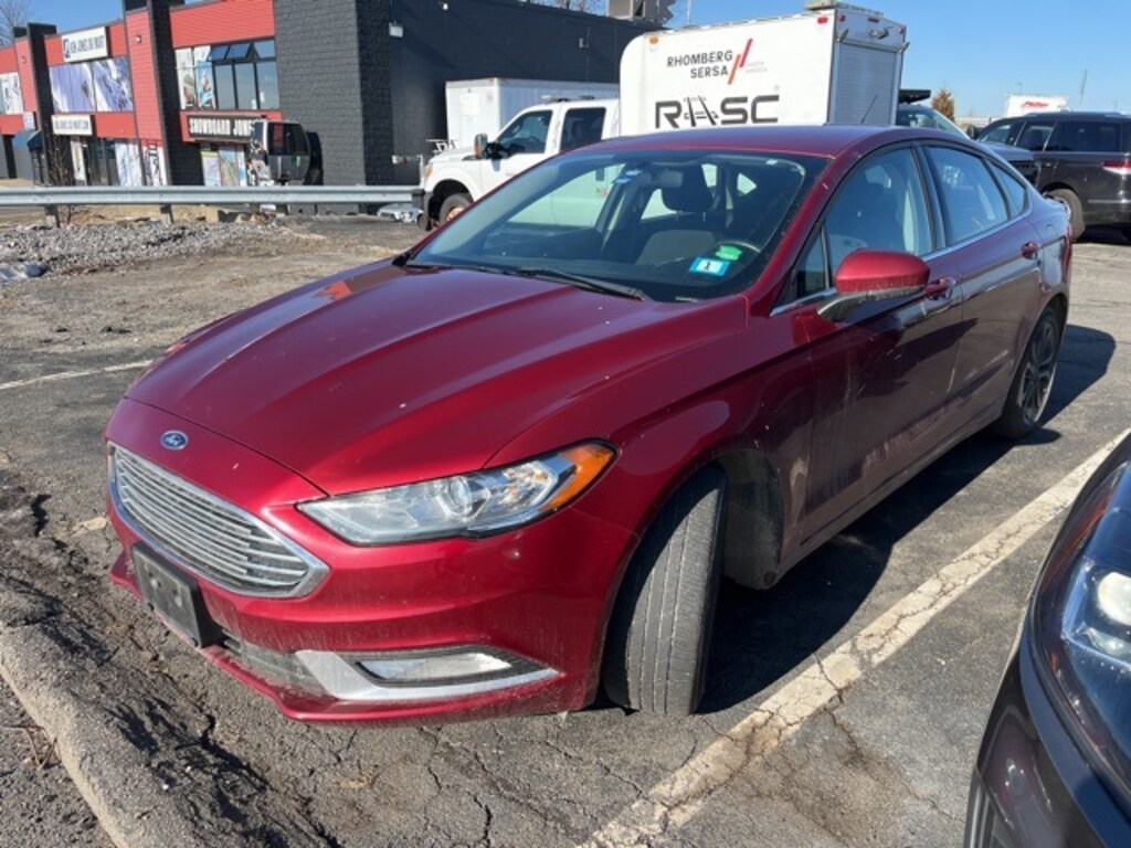 The 2018 Ford Fusion S in vibrant Ruby Red delivers a stylish and efficient driving experience, powered by a reliable 2.5L iVCT engine with smooth front-wheel drive. A Clean CARFAX and Recent Arrival, this Fusion is also Ford Blue Certified, providing added peace of mind. The Fusion S Appearance Package enhances its sporty character with 18-inch Magnetic-Painted Aluminum wheels, halogen fog lamps, and a rear spoiler, while practical touches like power door mirrors, leather-wrapped steering wheel, and cloth front bucket seats make every drive comfortable and enjoyable.