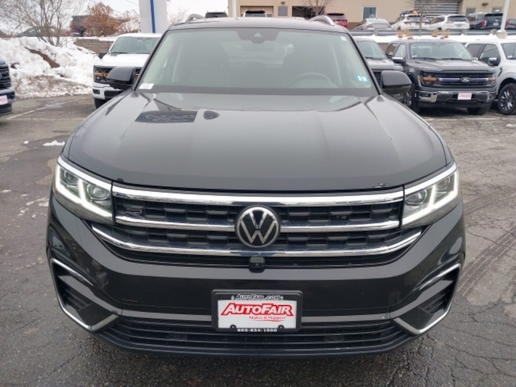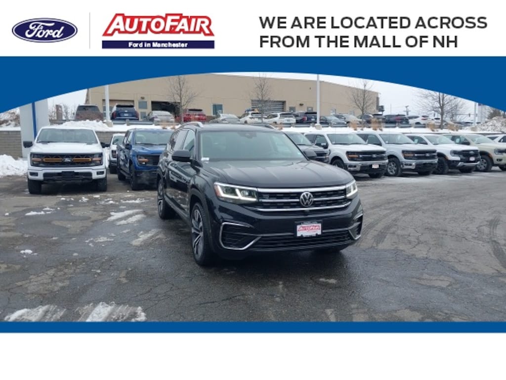 Designed for capability and style, this Atlas comes equipped with four-wheel independent suspension, speed-sensing sport steering wheel, rear bumper applique in chrome, and trailer hitch extras, making it ready for towing and family adventures. The SUV rides on 21" two-tone machined alloy wheels, giving it a bold and athletic presence on the road. Recently arrived at AutoFair Ford of Manchester, New Hampshire, this Volkswagen Atlas SEL Premium R-Line combines premium features, versatile performance, and certified reliability, making it a confident choice for drivers and families alike.