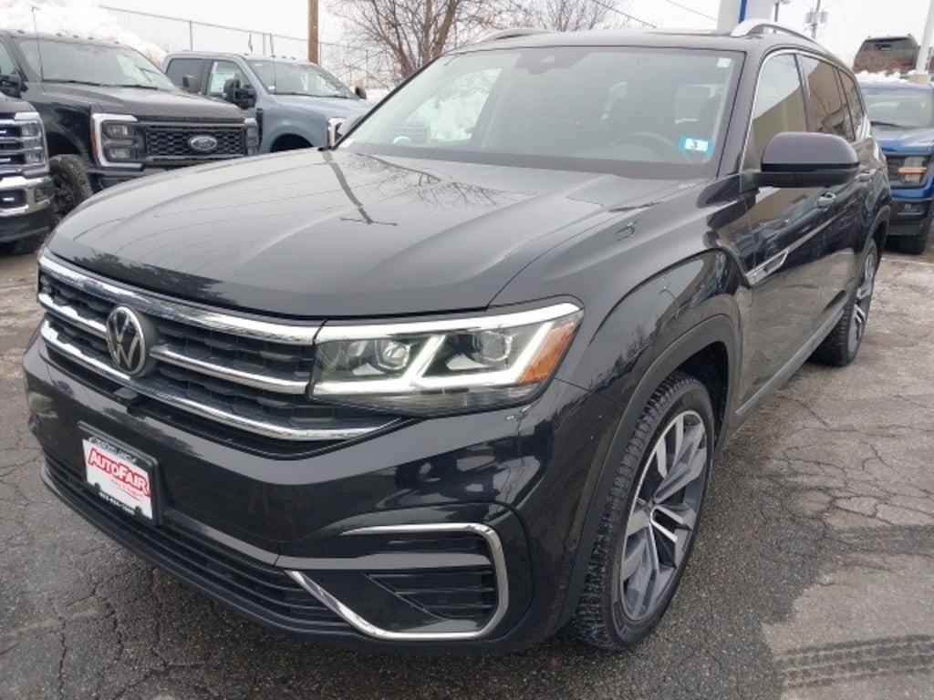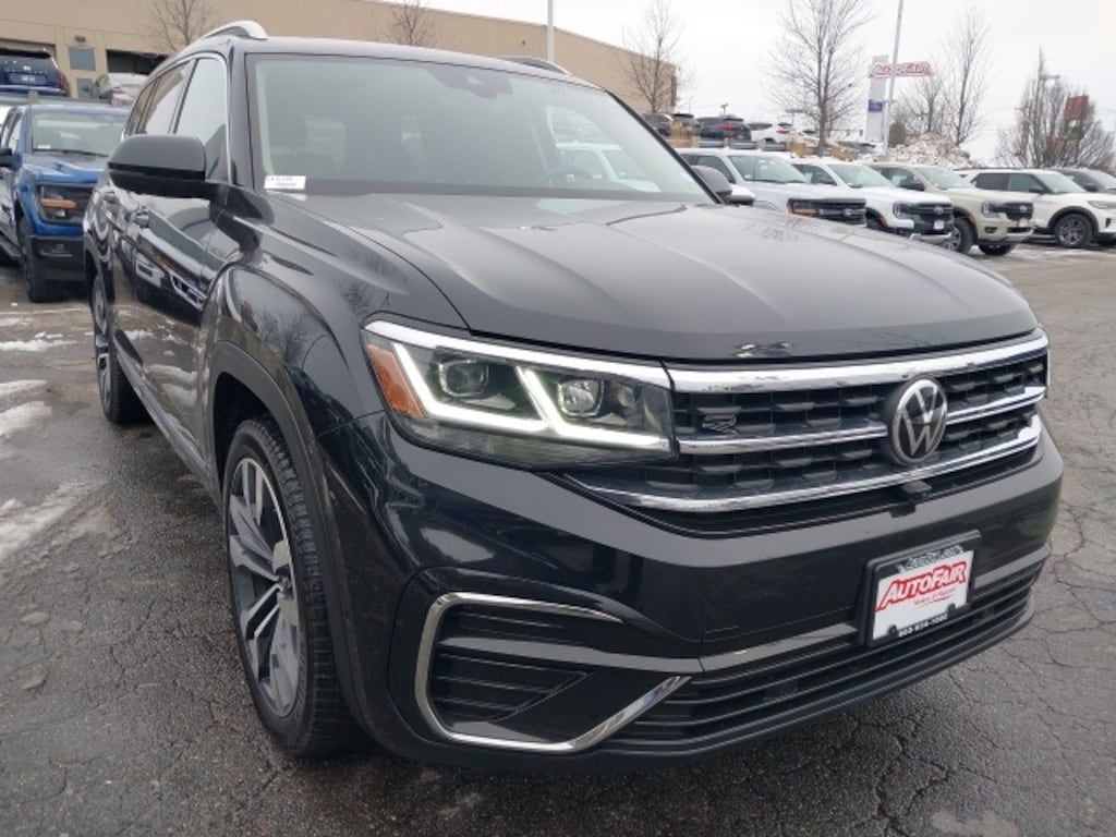 The 2021 Volkswagen Atlas SEL Premium R-Line in Deep Black is a spacious and stylish SUV designed for performance, comfort, and versatility. Powered by a 3.6L VR6 engine with All-Wheel Drive, it delivers smooth, confident handling in all driving conditions. With a Clean CARFAX and AutoFair Certified Warranty, this Atlas provides peace of mind for its next owner. The interior features heated and actively ventilated comfort front sport seats, a heated steering wheel, power driver seat, power liftgate, and a power moonroof, combining luxury and convenience for every journey. Practical amenities like heated door mirrors, remote keyless entry, and Volkswagen logo puddle lights enhance everyday usability.